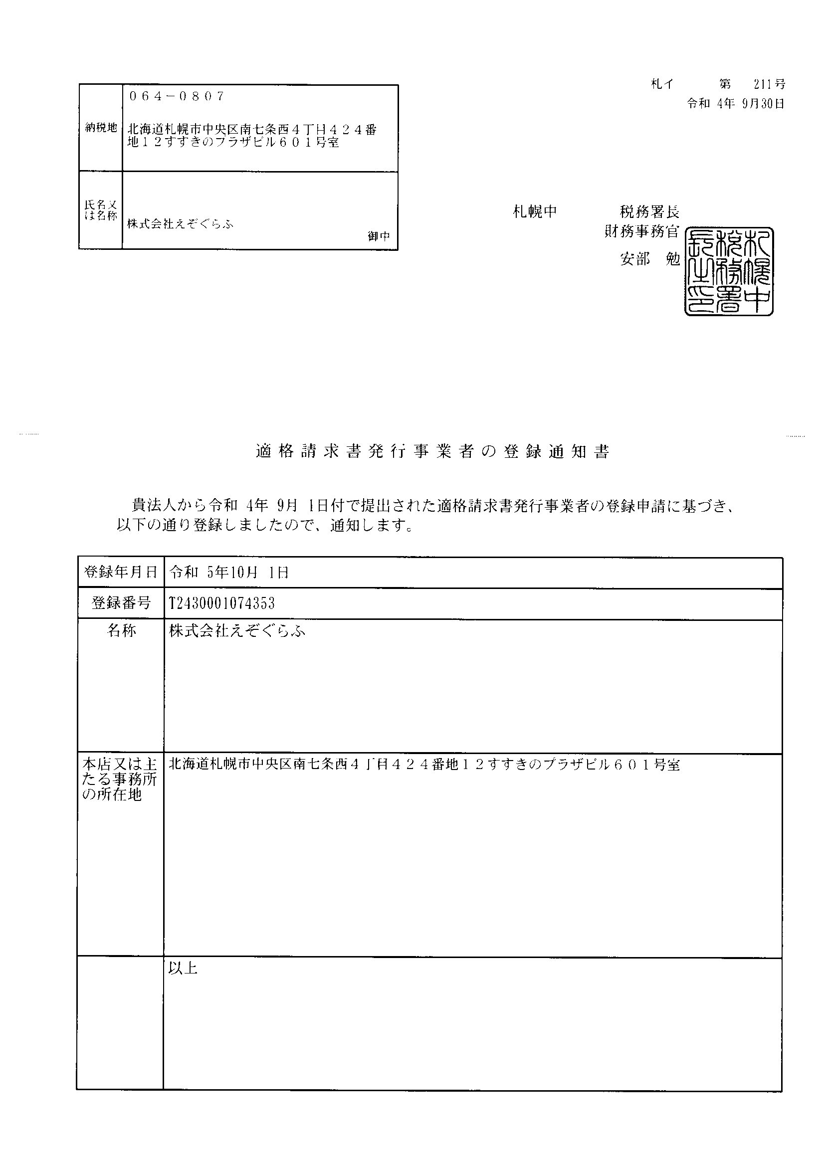 〒064-0807 北海道札幌市中央区南7条西4丁目